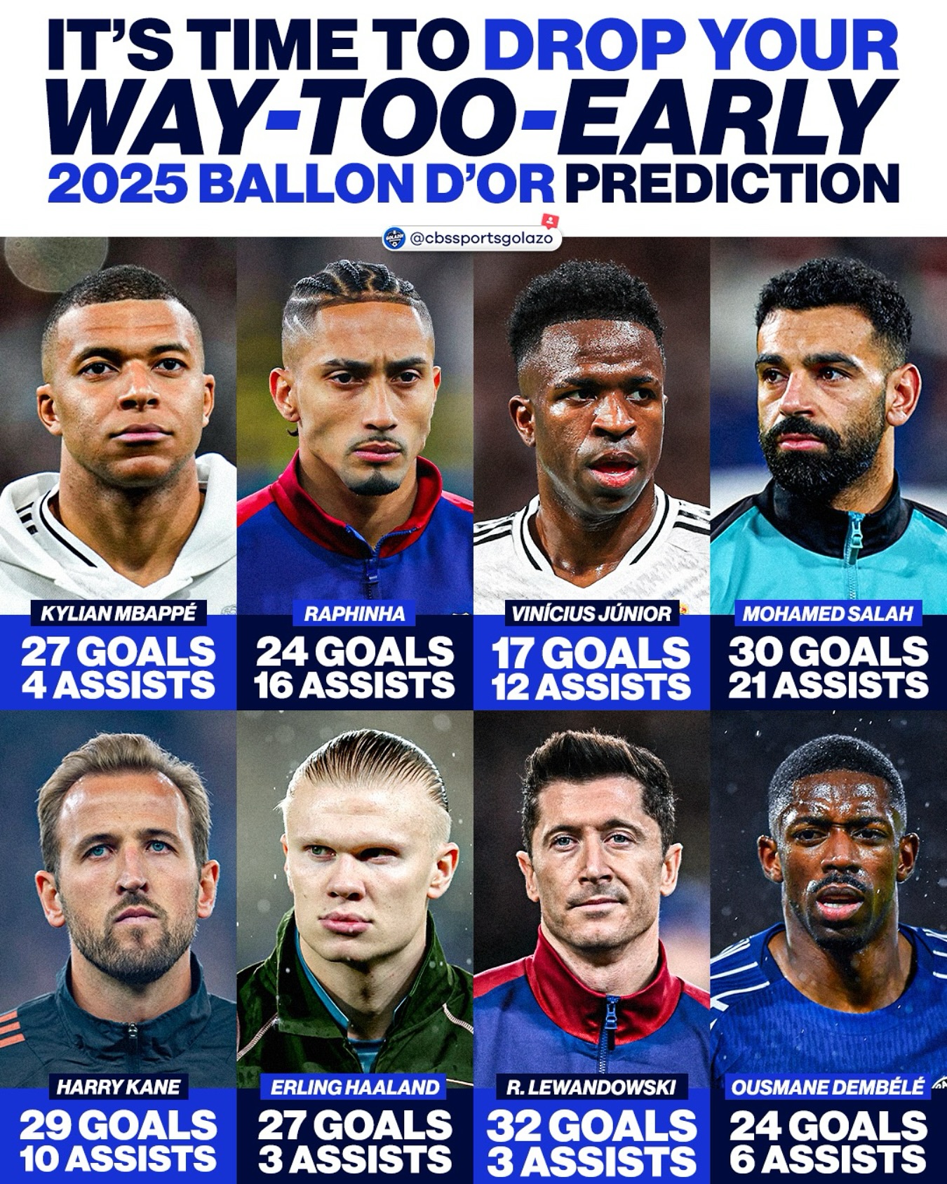 你看好誰(shuí)?金球熱門(mén)人選數(shù)據(jù):薩拉赫30球21助 姆巴佩27球4助 CBS列2025年金球獎(jiǎng)熱門(mén)候選數(shù)據(jù),你更看好誰(shuí)?姆巴佩:27球4助拉菲尼亞:24球16助維尼修斯:17球12助薩拉赫:30球21助凱恩:29球10助哈蘭德:27球3 2025/02/26