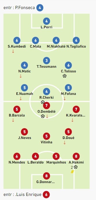 隊報評分巴黎3-2里昂:多納魯馬、阿什拉夫8分并列最高 2月24日訊 今天凌晨, 巴黎圣日耳曼在法甲客場3-2擊敗里昂,《隊報》為兩隊球員進行了評分。里昂評分:主帥:豐塞卡4分門將:佩利4分后衛(wèi):昆貝迪6分、克靈頓-馬塔6分、尼亞哈特4分、塔利亞菲科4分中 2025/02/24