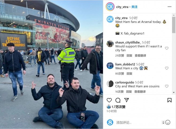 西漢姆球迷打坐慶祝戰(zhàn)勝阿森納,哈蘭德社媒點贊 2月23日訊 英超第26輪比賽,西漢姆客場1-0擊敗阿森納。此役賽后西漢姆球迷在場外做出哈蘭德標(biāo)志性的打坐慶祝動作,哈蘭德在社交媒體上為相關(guān)照片點贊。 2025/02/23