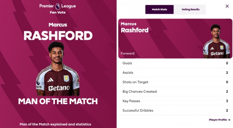 活了!官方:拉什福德當(dāng)選維拉2-1切爾西全場(chǎng)最佳 2助攻導(dǎo)演逆轉(zhuǎn) 2月23日訊 阿斯頓維拉主場(chǎng)2-1擊敗切爾西。本場(chǎng)比賽,拉什福德當(dāng)選全場(chǎng)最佳球員!拉什福德的得票率為53.8%。本場(chǎng)比賽,拉什福德貢獻(xiàn)2次助攻,是維拉取勝的首功之臣。 2025/02/23