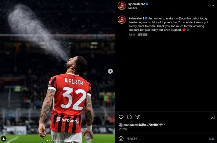 沃克:很榮幸迎來首秀遺憾沒能全取三分,感謝加盟以來對我的支持 2月3日訊 本輪意甲米蘭德比中,米蘭1-1遭國米絕平。賽后,迎來米蘭生涯首秀的沃克更新社媒,向球迷表示感謝。沃克寫道:非常榮幸能在今天迎來我的米蘭生涯首秀。很遺憾我們沒能全取三分,但我相信我們未來還會 2025/02/03