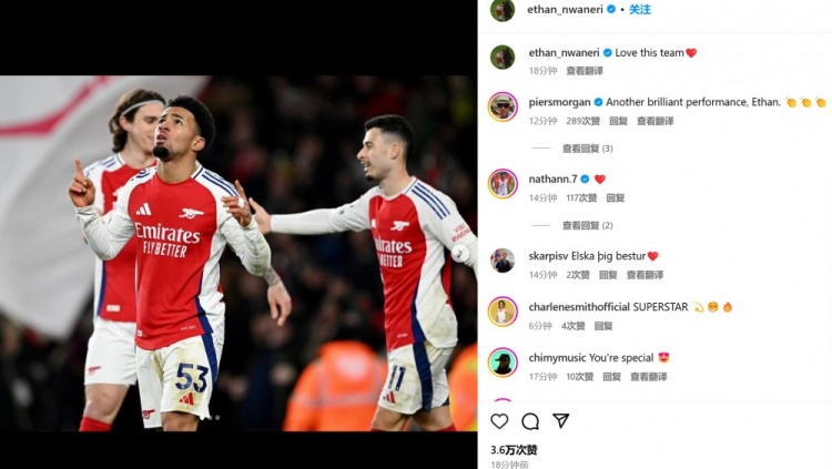 凝聚力拉滿!恩瓦內(nèi)里社媒曬慶祝照:我愛這支球隊 2月3日訊 阿森納在本輪英超焦點戰(zhàn)迎戰(zhàn)曼城,最終5-1大勝老對手。小將恩瓦內(nèi)里也取得進球。第90+3分鐘,替補登場的恩瓦內(nèi)里禁區(qū)前沿盤帶后轟出一腳世界波直掛遠角。恩瓦內(nèi)里也在賽后通過社媒曬出自己的慶祝 2025/02/03