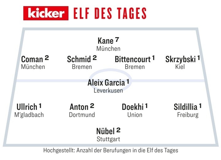 踢球者評本輪德甲最佳陣:凱恩領(lǐng)銜,科曼、努貝爾在列 2月3日訊 德甲本輪比賽已經(jīng)全部完賽,《踢球者》也評出了本輪最佳陣容,拜仁和不萊梅各2將。踢球者評本輪德甲最佳陣:4141中鋒:凱恩(拜仁)、前衛(wèi):科曼(拜仁)、斯赫米德(不萊梅)、比滕考特(不萊梅) 2025/02/03