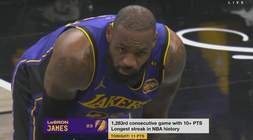 雖遲但到!詹姆斯第四節(jié)開(kāi)局連得8分連續(xù)1283場(chǎng)比賽得分上雙! 2025/03/27