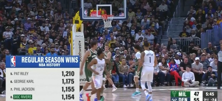 今天能追平嗎?里弗斯勝場(chǎng)數(shù)排名歷史第八 距離禪師僅差1場(chǎng) 2025/03/27