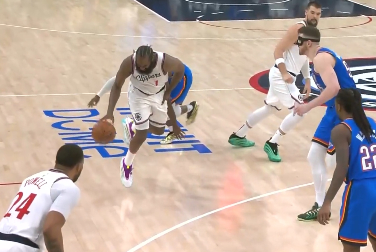 被多特貼身頂翻!哈登捂著自己的大腿痛苦倒地!好在無礙繼續(xù)比賽 簡單調(diào)整后哈登重回比賽 2025/03/24