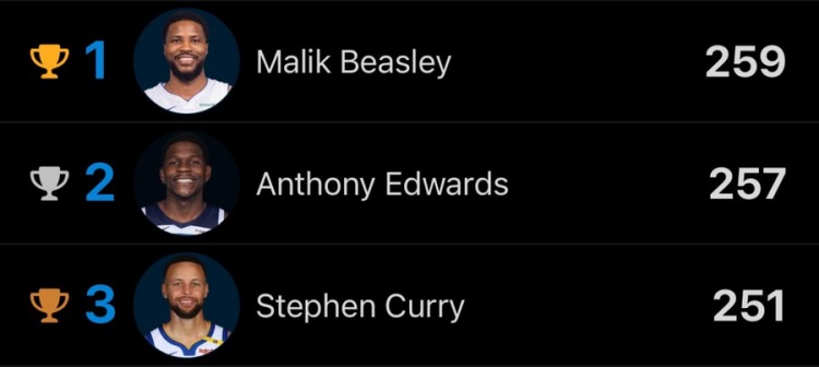 最終誰會第1?聯盟三分榜前3:比斯利259 華子257 庫里251 2025/03/12