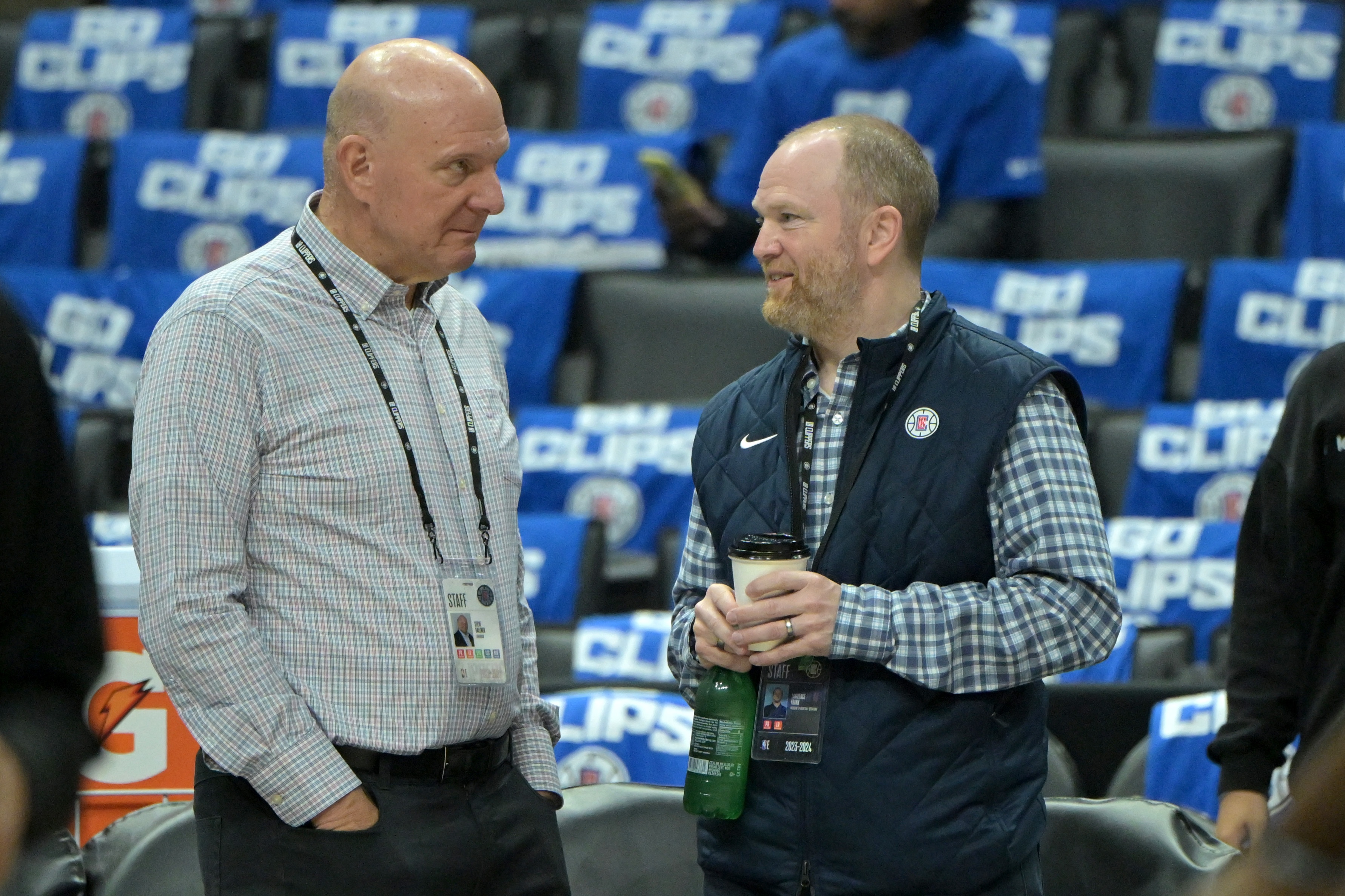 賽后雷霆GM普雷斯蒂于更衣室前等待威少兩人擁抱大笑交談甚歡