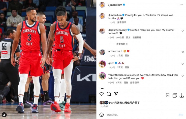 賽季報(bào)銷!CJ祝福德章泰-穆雷 后者:你這樣的不多了 永遠(yuǎn)的兄弟 2月2日訊 此前鵜鶘官方宣布,球隊(duì)后衛(wèi)德章泰-穆雷被診斷為右跟腱斷裂,賽季報(bào)銷。隊(duì)友CJ在INS上為其送上祝福:“5號(hào),為你祈禱。你知道我們之間的情誼永存。????????????”穆雷則是回復(fù):“像你這樣的不多 2025/02/02