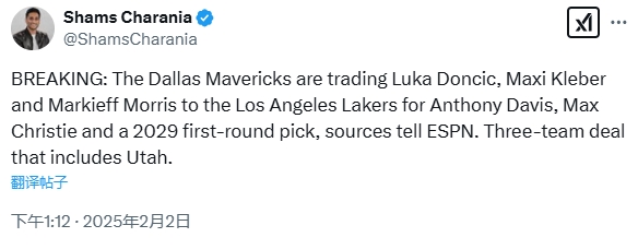 濃眉與東契奇互換?美記震驚:Shams被盜號了? 02月02日訊 Shams爆料,三方交易,東契奇被交易至湖人,濃眉去到獨行俠。記者Jay King震驚:“Shams被盜號了嗎?真的?我的發(fā)!” 2025/02/02