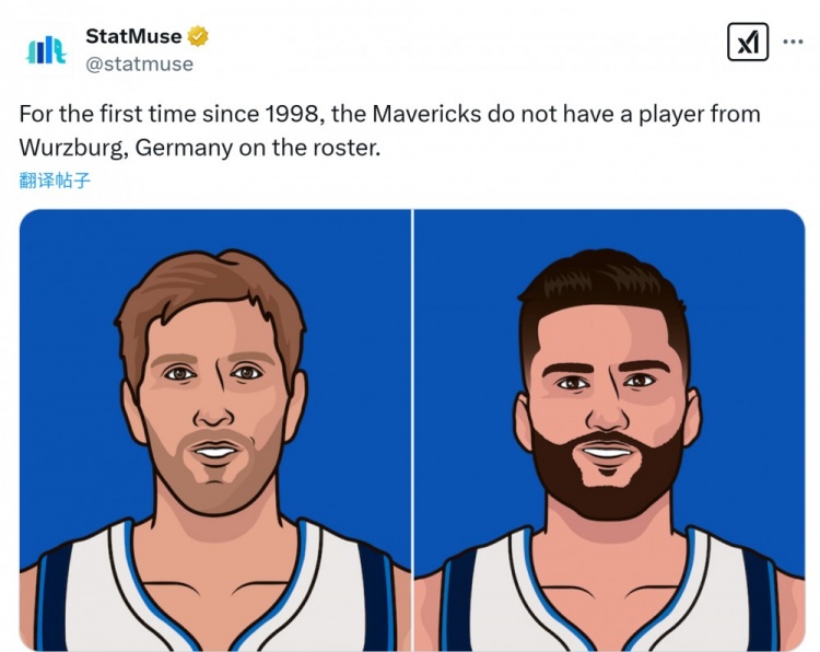 美媒:獨行俠隊里沒有來自德國維爾茲堡的球員 隊史1998年來首次 美媒StatMuse:“這是1998年以來,獨行俠首次隊里沒有一名來自德國維爾茲堡的球員。(諾維茨基和克萊伯均來自此地)” 2025/02/02
