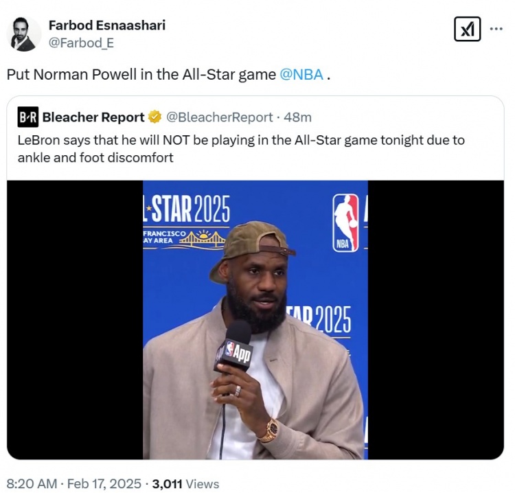 詹姆斯臨時缺陣!船記直接喊話NBA官方:讓鮑威爾進全明星吧