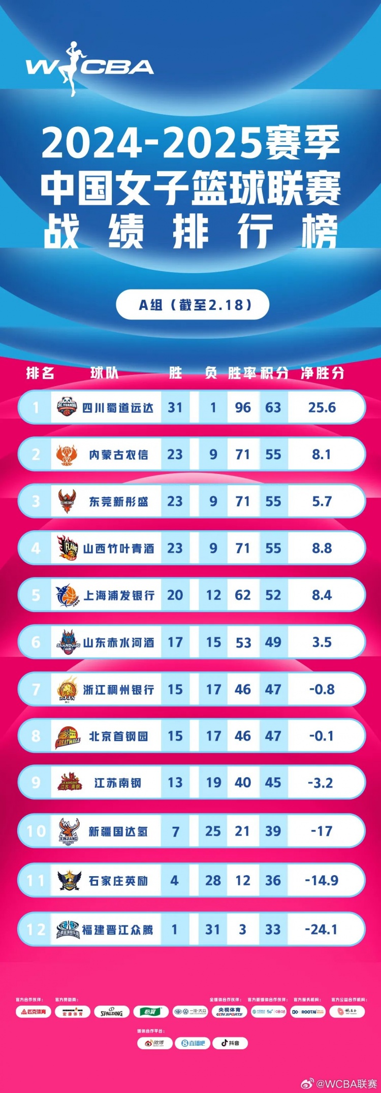 但WCBA官網(wǎng)上的凈勝分數(shù)據(jù)和微博發(fā)布的數(shù)據(jù)有矛盾,本文選了微博發(fā)布數(shù)據(jù)