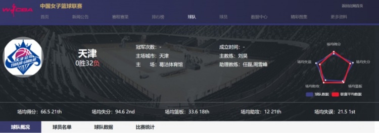 尷尬的是,身處B組的天津冠嵐躺得更徹底,0勝32負,場均凈負30.5分,成為2014-15賽季以來,第4支賽季全敗的球隊。