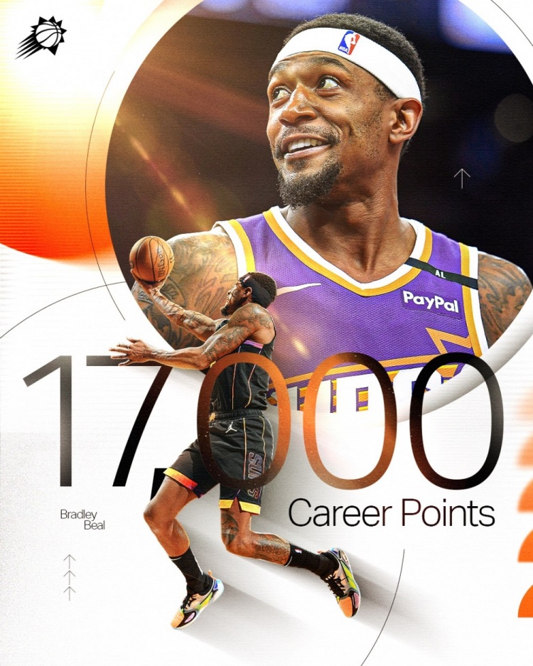比爾已經(jīng)得到了4分,這樣他的生涯總得分正式越過了17000分大關(guān)(本場(chǎng)比賽前16997分)。