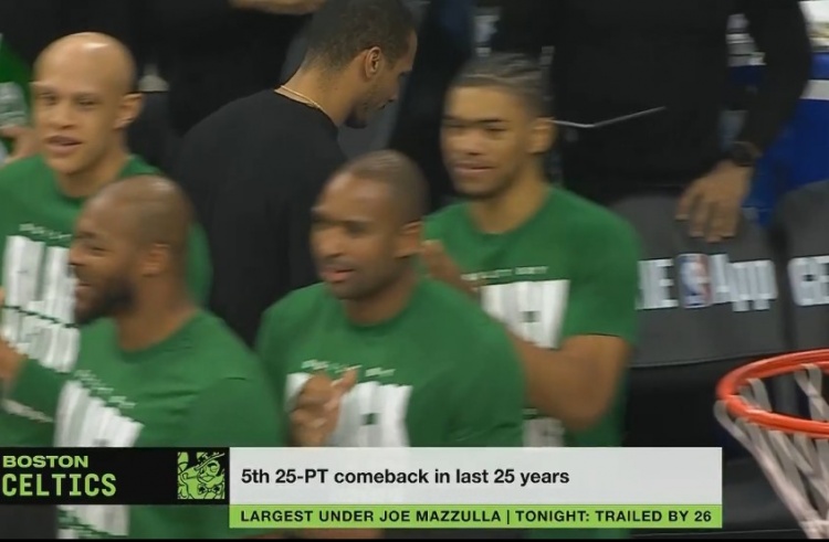本場比賽,凱爾特人最多曾經(jīng)落后26分,最終完成翻盤,這是馬祖拉時代最大逆轉(zhuǎn)分差。