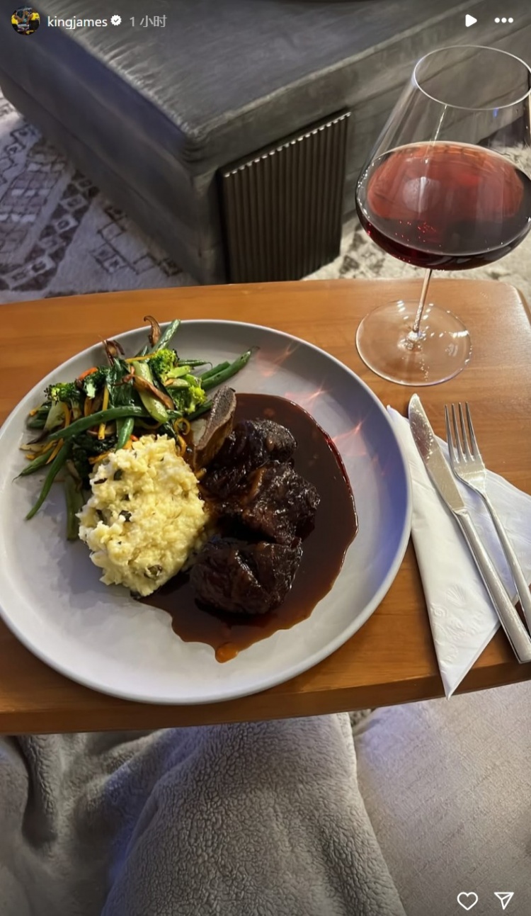 2月3日訊 今天,湖人球星勒布朗-詹姆斯在INS曬出了自己的晚餐,并寫道:“回到家里真的是太高興了?!?/p>