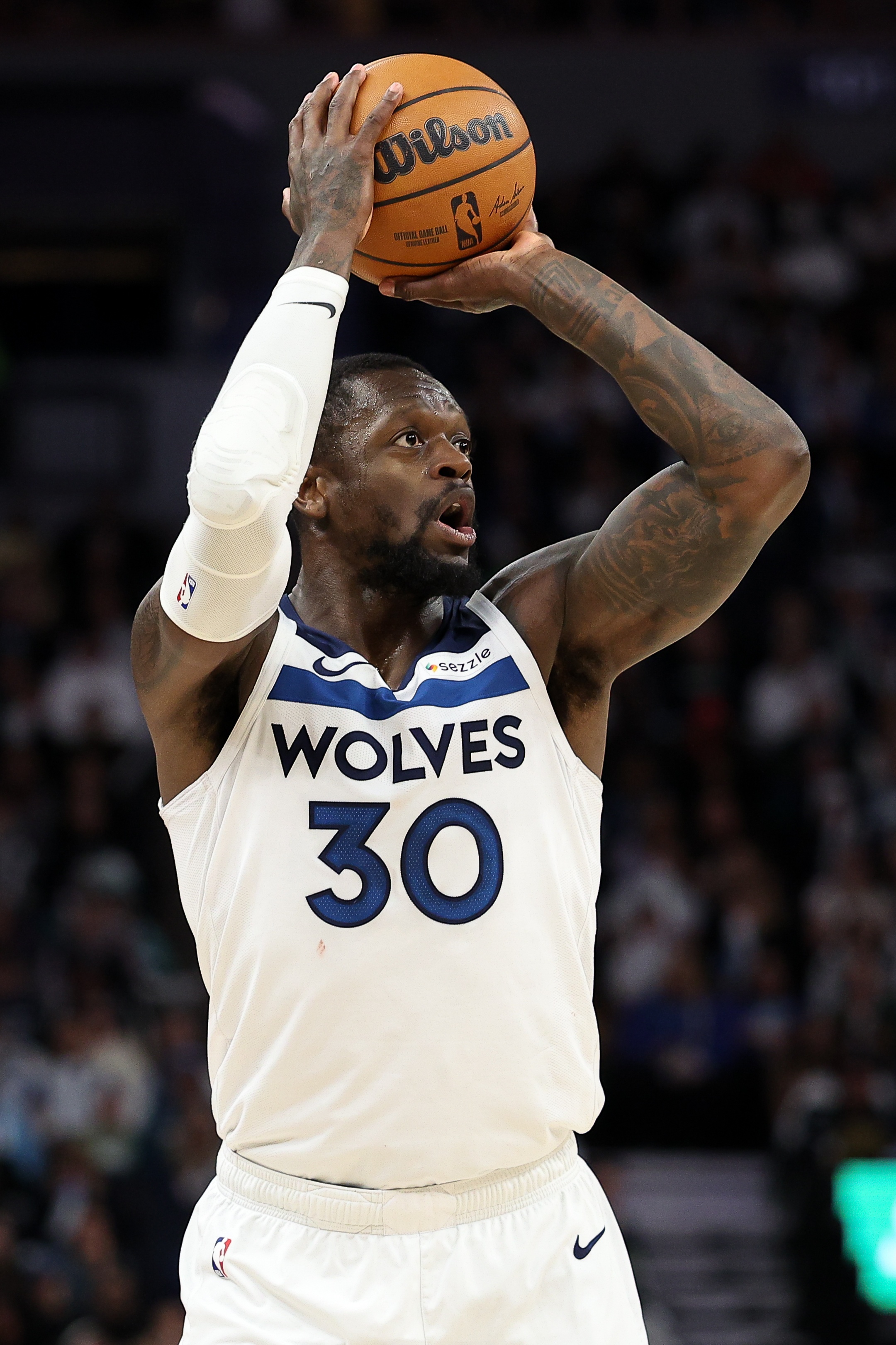 30歲的朱利葉斯-蘭德?tīng)柋举惣緸槊髂崽K達(dá)森林狼隊(duì)出場(chǎng)48次,場(chǎng)均32.6分鐘,得到18.9分7.2籃板4.5助攻0.2封蓋0.7搶斷,命中率47.0%,三分命中率32.1%,罰球命中率81.1%。