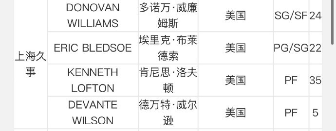 其中,上海男籃新援多諾萬-威廉姆斯完成注冊。