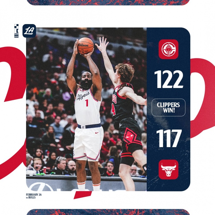砍30分6助&關(guān)鍵三分殺死比賽!快船官方贏球海報封面人物:哈登
