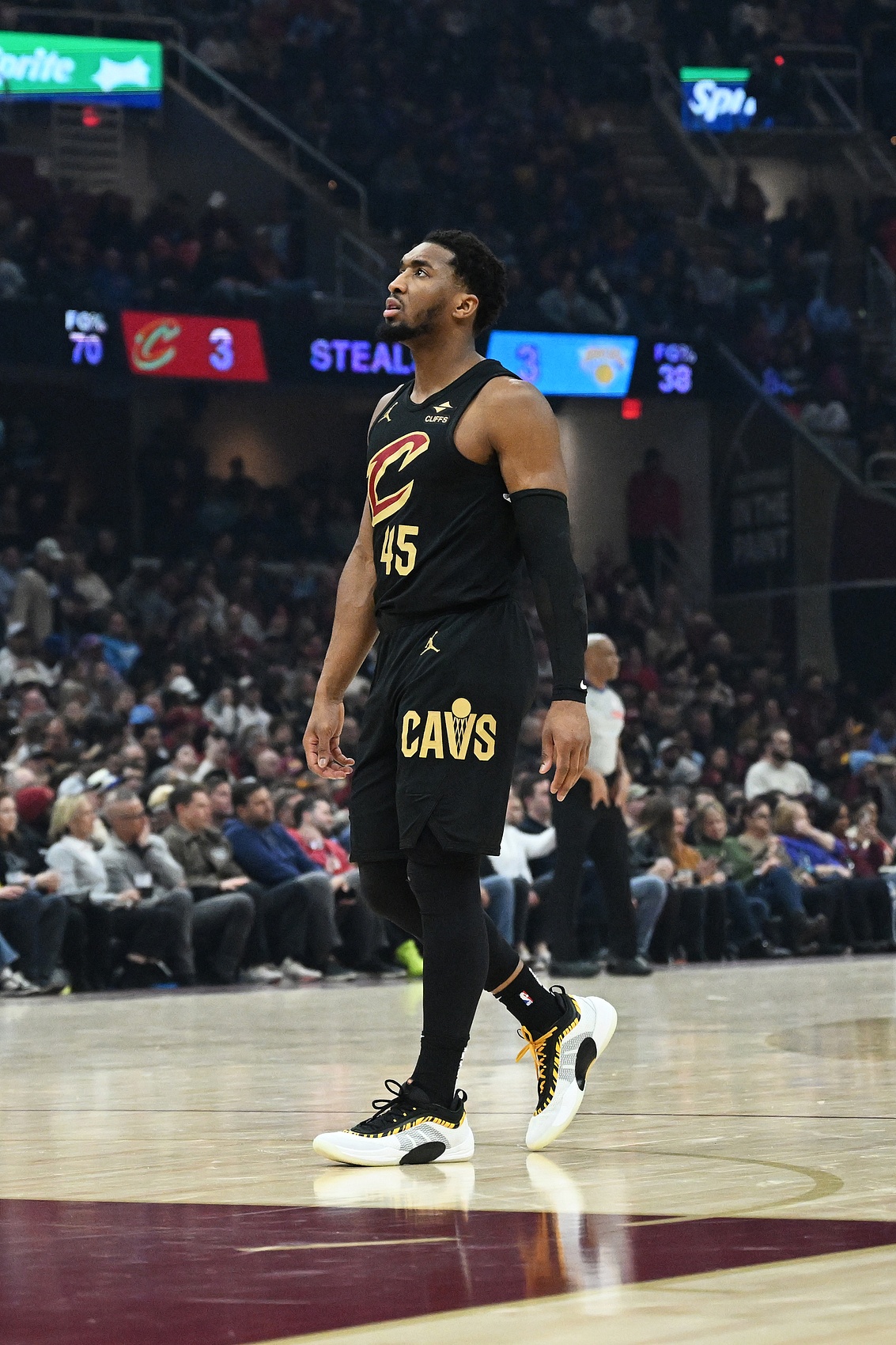 米切爾描述了周五對陣尼克斯時他所在的第二陣容,當時他與奧科羅、韋德、亨特和莫布里一起上場,他打控球后衛(wèi)——這是一個身材高大、技術也很強的陣容,同時還具備三分威脅。他還說,加蘭在對陣尼克斯時 “獲得了兩次空位上籃機會”,因為唐斯當時好像在想,“哦,糟了,我得去底角補防?!?/p>