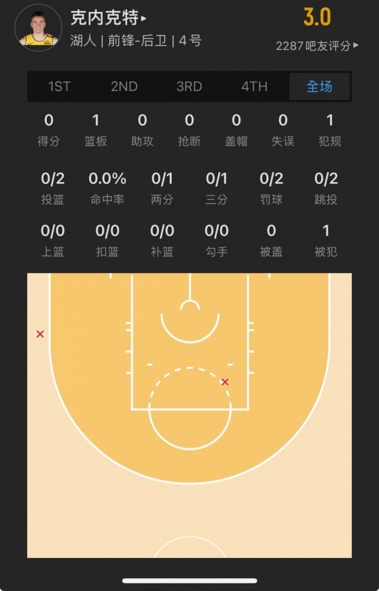 湖人17號秀 道爾頓-克內(nèi)克特 登場11.0分鐘