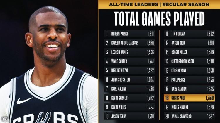 這樣一來(lái),保羅生涯常規(guī)賽出場(chǎng)數(shù)達(dá)到1330場(chǎng),超越摩西-馬龍獨(dú)占?xì)v史第18位置,下一步將追逐加里-佩頓(1335場(chǎng))。