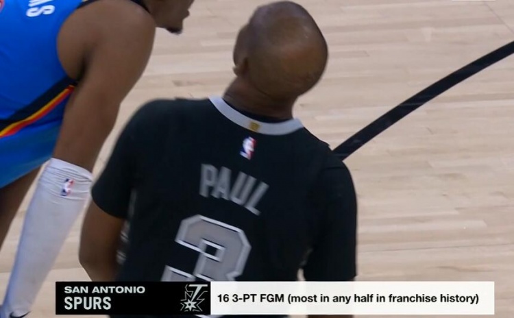 上半場(chǎng)比賽,馬刺全隊(duì)三分26中16,16記三分創(chuàng)造了馬刺隊(duì)史任意半場(chǎng)三分命中數(shù)紀(jì)錄。