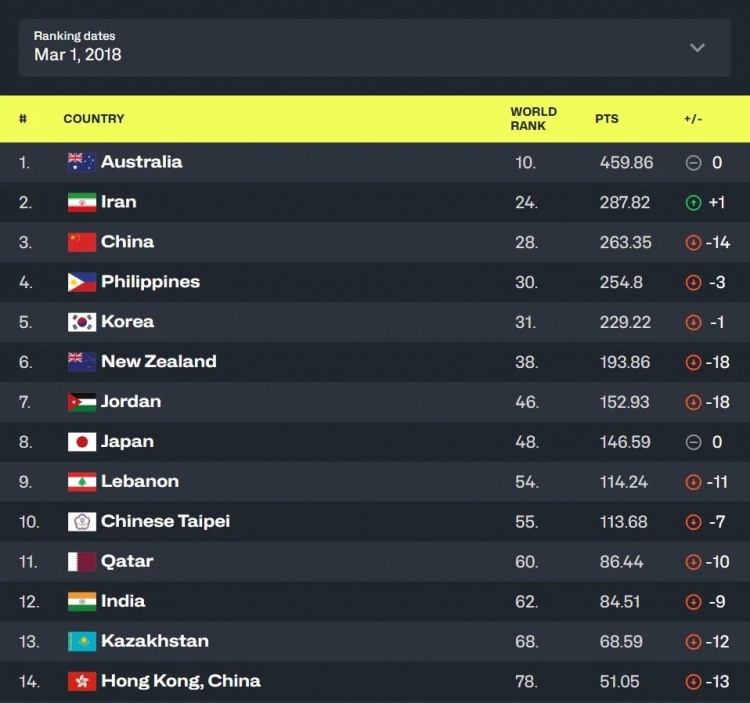 這里可以看到,中國隊俯沖掉了14名,同樣俯沖的還有非洲區(qū)第一第二尼日利亞和安哥拉,以及大洋洲千年老二新西蘭