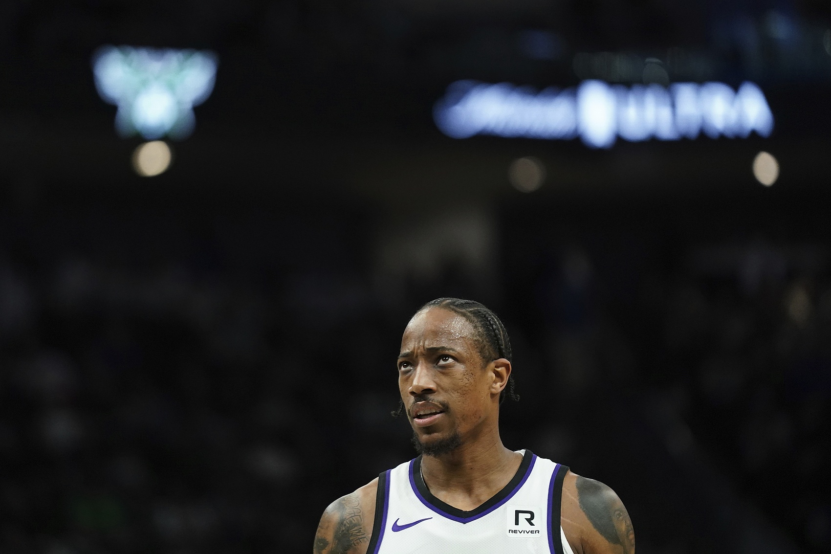 此役國(guó)王前鋒德羅贊表現(xiàn)出色,打了37分鐘25投14中,三分4中2、罰球4中3砍全場(chǎng)最高33分外加5籃板7助攻。