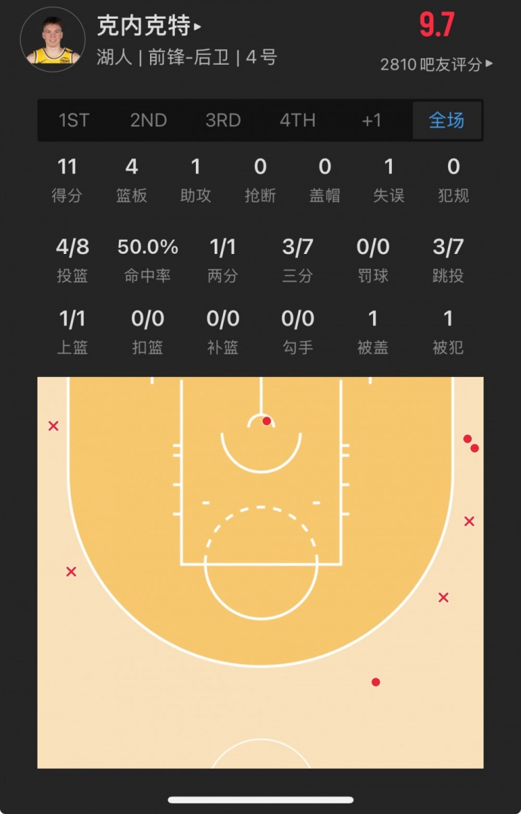 湖人17號(hào)秀 道爾頓-克內(nèi)克特 登場20.6分鐘