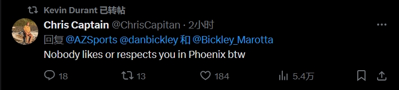 球迷二:在菲尼克斯沒人尊重你,只是順帶一提哈!