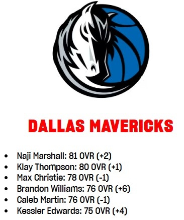 3月21日訊 今天,NBA 2K更新了球員的能力值,獨行俠的變化情況如下: