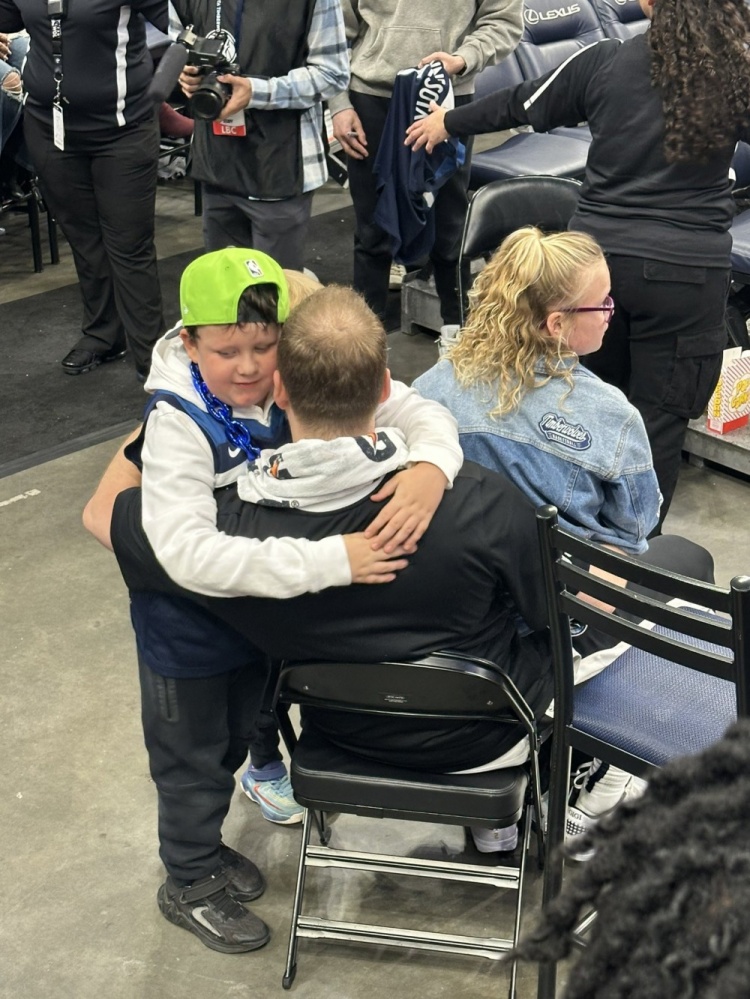 本場比賽,森林狼老將喬·英格爾斯12歲的自閉癥兒子雅各布,在家人的陪同下來到了現(xiàn)場觀看父親的比賽。森林狼主教練貼心地將英格爾斯安排進了首發(fā),這也是自2021-22賽季,英格爾斯首次首發(fā),當時他還在爵士隊。