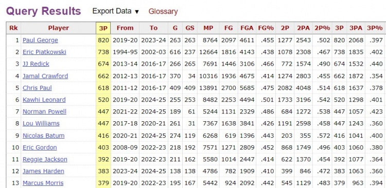 根據(jù)數(shù)據(jù)統(tǒng)計(jì),加上已經(jīng)投進(jìn)的1個三分,鮑威爾快船生涯三分?jǐn)?shù)來到448記,他超越路威,獨(dú)居隊(duì)史三分榜第7位。