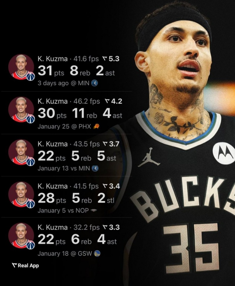 據(jù)統(tǒng)計(jì),本賽季當(dāng)庫茲馬出戰(zhàn)時(shí)間大于30分鐘時(shí)(13場比賽),他場均能得到21.7分6.4籃板2.4三分,投籃命中率45.4%,三分命中率36%。