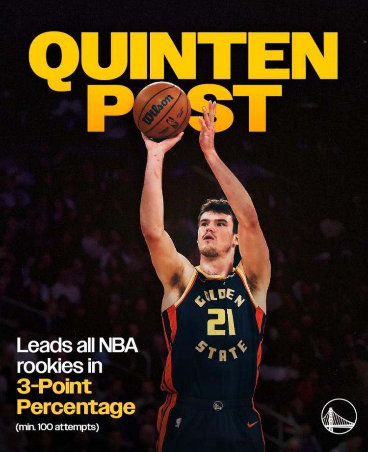 據(jù)統(tǒng)計,波斯特本賽季的三分命中率排在本屆新秀(至少出手100次以上)第一名。