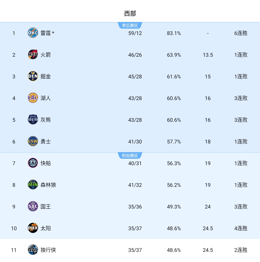 本場(chǎng)比賽過后,太陽取得4連勝,戰(zhàn)績(jī)來到35勝37負(fù),憑借交手戰(zhàn)績(jī)(3-1)超越獨(dú)行俠,升至西部第十,闖進(jìn)了附加賽區(qū)域!