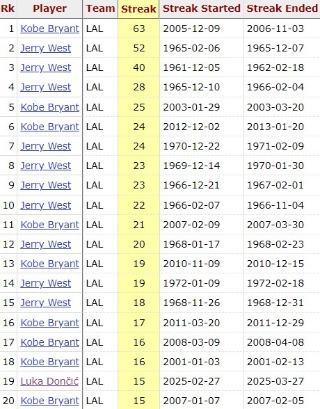 目前,東契奇已經(jīng)連續(xù)15場比賽20+,為湖人隊史第3位做到的后衛(wèi)球員,此前兩位是科比和杰里-韋斯特。