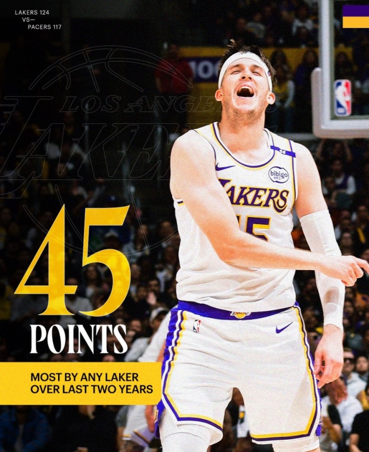 據統(tǒng)計,45分是近兩年湖人球員單場最高分(詹姆斯最高42分、濃眉最高也是42分)。