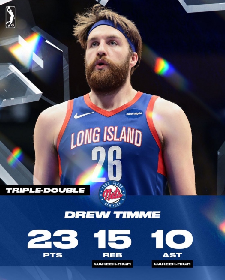 古典中鋒!德魯-蒂米在G聯(lián)盟19中7砍23分15板10助 生涯首次三雙