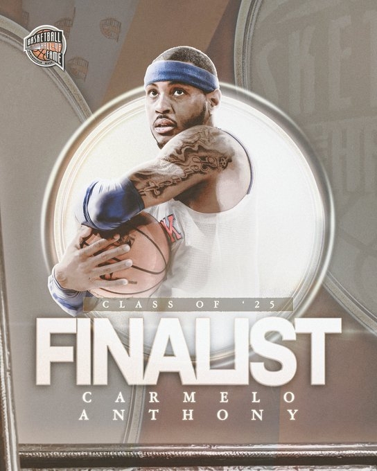 2月16日訊 昨天,NBA官方公布了2025年名人堂最終候選名單,安東尼入選。