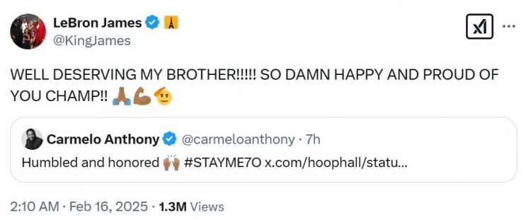 勒布朗-詹姆斯轉(zhuǎn)發(fā)評(píng)論道:“我的兄弟實(shí)至名歸?。。。。∥襎MD太為你這位冠軍感到高興和驕傲了??????????????????????!”