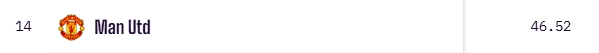 數(shù)據(jù)機(jī)構(gòu)Opta最新的預(yù)測(cè)結(jié)果顯示,曼聯(lián)本賽季最終可能拿到46-47個(gè)積分,預(yù)計(jì)排名聯(lián)賽第14。