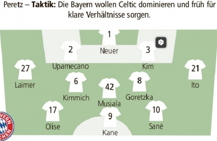 2月18日訊 北京時(shí)間周三凌晨的歐冠淘汰賽附加賽次回合,拜仁將在主場迎戰(zhàn)凱爾特人,《慕尼黑日報(bào)》對主隊(duì)的首發(fā)陣容進(jìn)行了預(yù)測,凱恩、薩內(nèi)、奧利塞組成進(jìn)攻三叉戟。