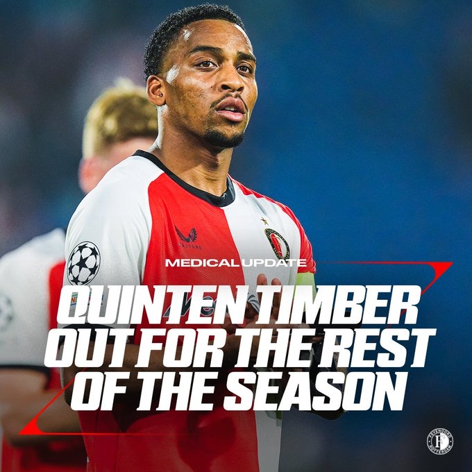 2月18日訊 費耶諾德發(fā)布官方公告,昆滕-廷伯的膝外側韌帶受傷,預計需要數月時間恢復。昆滕-廷伯已經接受了手術,本賽季將不會再出場比賽。