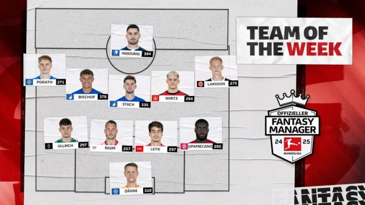 2月18日訊 德甲第22輪已經(jīng)完賽,德甲官網(wǎng)也評(píng)出了本輪官方最佳陣容,維爾茨領(lǐng)銜。