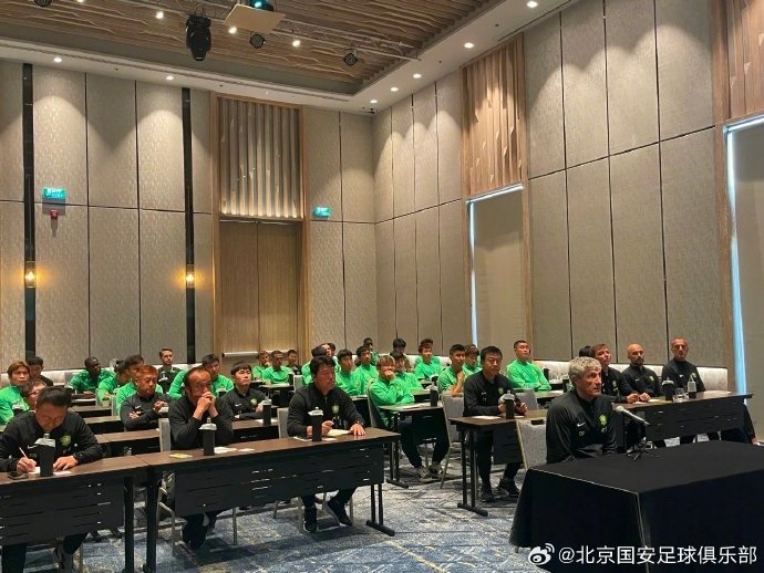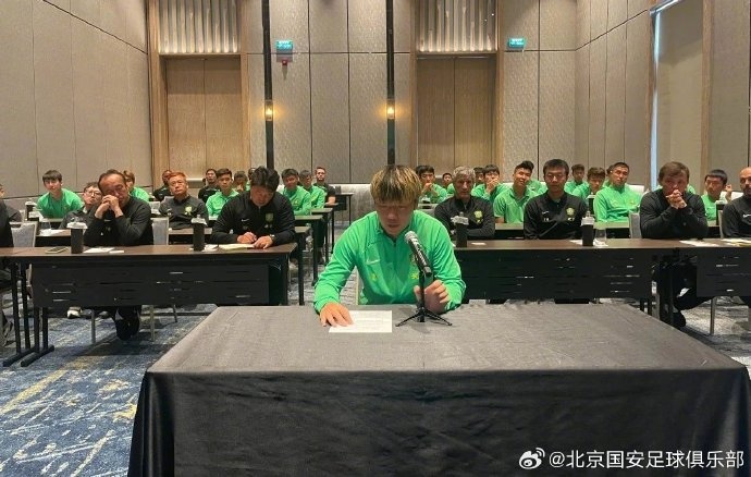 周金輝董事長的發(fā)言鼓舞了全隊的士氣,隊長張稀哲隨后代表全體隊員發(fā)言,他說:“新教練組的到來重塑了我們的足球思維,起初或許有磨合的陣痛,但現(xiàn)在,我們清晰感受到——這支團隊的心跳得更快、更齊了。我們也將在主教練的帶領(lǐng)下,同心協(xié)力,一切以團隊為先,集體為先。遵守隊規(guī),遵守賽風(fēng)賽紀,堅守職業(yè)道德。身披綠色戰(zhàn)袍的這些年,工體山呼海嘯的吶喊早已刻進骨髓。我們記得球迷在場內(nèi)堅毅又期待的目光,記得數(shù)以萬計的的綠色圍巾,更記得一次次場內(nèi)tifo給予我們的力量。新賽季的倒計時已經(jīng)響起!我們會像捍衛(wèi)家門一樣守護每一寸球場。沒有保留,沒有退路,唯有將每一分鐘燃燒到極致——為了北京,為球迷,更為了我們的信仰,“國安永遠爭第一”!”