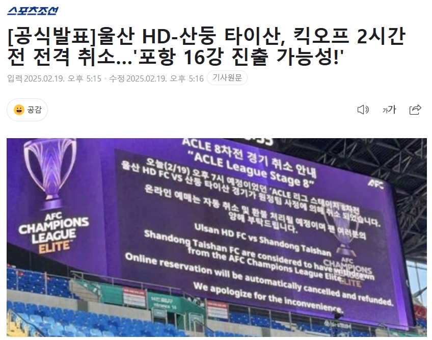 泰山隊(duì)退賽!博主:蔚山的大巴已經(jīng)抵達(dá)球場(chǎng),隨后又開(kāi)了回去