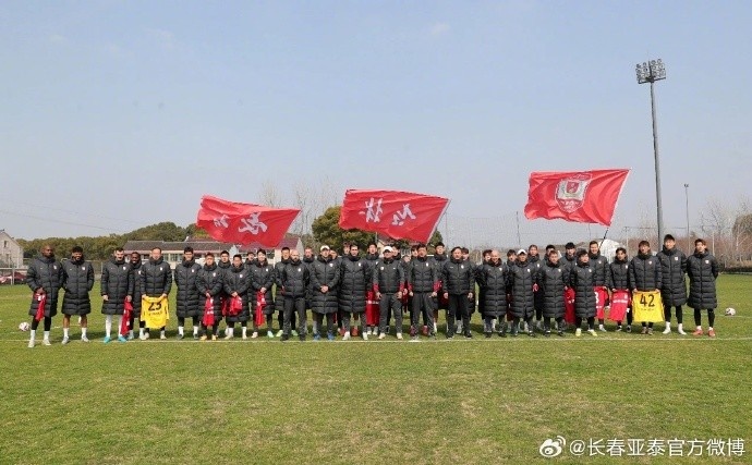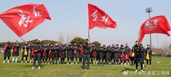 19日10時,上海天氣晴好,亞泰將士抵達訓練場。訓練前,全隊舉行了新賽季出征儀式。俱樂部總經理曾皎峰帶著省市體育局的囑托,專程從長春趕到上海看望亞泰將士。在出征儀式上,曾皎峰受省市體育局委托,向全體將士授吉林省旗、長春市旗、亞泰隊旗,主帥謝暉、領隊常琳、隊長譚龍分別接過吉林省、長春市、長春亞泰三面大旗?!霸趧倓偨Y束的在哈爾濱第九屆亞洲冬季運動會上,吉林省冰雪健兒敢打敢拼、不畏困難,獲得了9金5銀6銅的優(yōu)異成績,為祖國和家鄉(xiāng)贏得了榮譽,進一步激發(fā)了吉林省體育系統(tǒng)奮勇爭先的熱情。作為足球運動員,我希望長春亞泰全體將士們,牢記為長春戰(zhàn)斗的使命,共同努力,換來一年的好成績?!痹ǚ逭f。